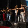 Members of the Pediatric AIDS Coalition at UCLA hold up white cards on stage that read “$53,932,” the total amount of money raised during their Dance Marathon on Mar. 7. PAC President Caroline Meyers said that the coalition’s efforts were imperative to helping organizations that provide lifesaving treatment. (Leydi Cris Cobo Cordon/Daily Bruin senior staff)