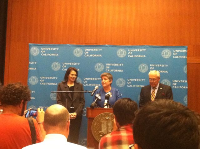 At the press conference, Regents Chair Bruce Varner said Napolitano’s new salary package is about 10 percent lower than the package Yudof currently receives, which has an annual base salary of $591,000.