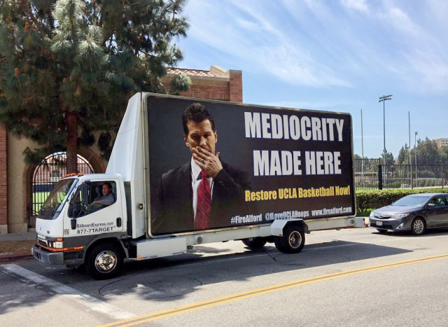 As mobile billboards calling for the firing of coach Steve Alford made appearances around campus Wednesday – continuing a string of actions demanding his release – the Daily Bruin set up shop at the newspaper stand outside of Ackerman Union to gauge reactions from the general student body.