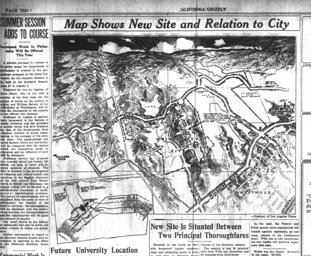 On March 21, 1925, the University of California Board of Regents decided to move its Southern Branch on Vermont Avenue into what was known as the Beverly Site. It was probably the biggest piece of news a Daily Bruin (the California Grizzly, at the time) reporter could have dreamed of writing about.