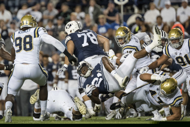 Powered by the stout rushing ability of those three, the Bruins (1-1) take a 10-0 lead into halftime over the BYU Cougars (1-1) in Provo.