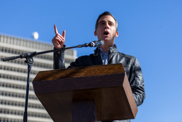 In his first term as mayor, Garcetti raised the minimum wage and lowered the business tax. He backed two measures, Measure M and Measure HHH, which voters approved to expand the city’s public transportation system and address homelessness, respectively.