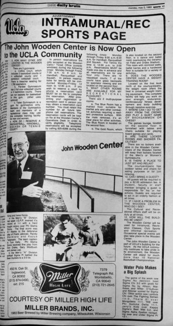 The ad closes out by boastfully declaring that the “Wooden Center will stand for much more than 10 National Basketball Championships.” Thirty-four years later, it’s safe to say that when it comes to usefulness, the Wooden Center easily punched above it own weight.