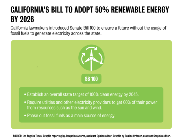 A noteworthy victim was Senate Bill 100, a bill authored by State Sen. Kevin de León and designed to hasten the state’s adoption of renewable energy. Under current law, California must derive 50 percent of its energy sustainably by 2030. The new bill would have increased this figure to 60 percent and would require a full commitment of 100 percent renewable energy by 2045.
