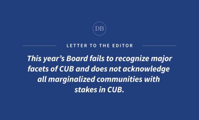 The editorial board has persistently attacked student representatives for baseless evaluations of their personalities, and demonized students who aren’t “direct entry” students through disturbing evaluations of transfers and students who haven’t served in “traditional” settings. Furthermore, by publishing false information such as claiming the cost of developing a Black Resource Center to be $182,000, substantially lower than any estimate on the same pie chart the editorial board cites, the editorial board fosters a narrative regarding CUB that’s been twisted to claim that funds could simply be obtained via other avenues.