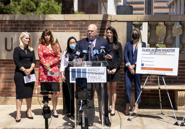 John Manly, an attorney whose firm is representing more than 100 of the women filing individual lawsuits against Heaps, said at the event that the settlement only caters to UCLA and its lawyers rather than the victims.