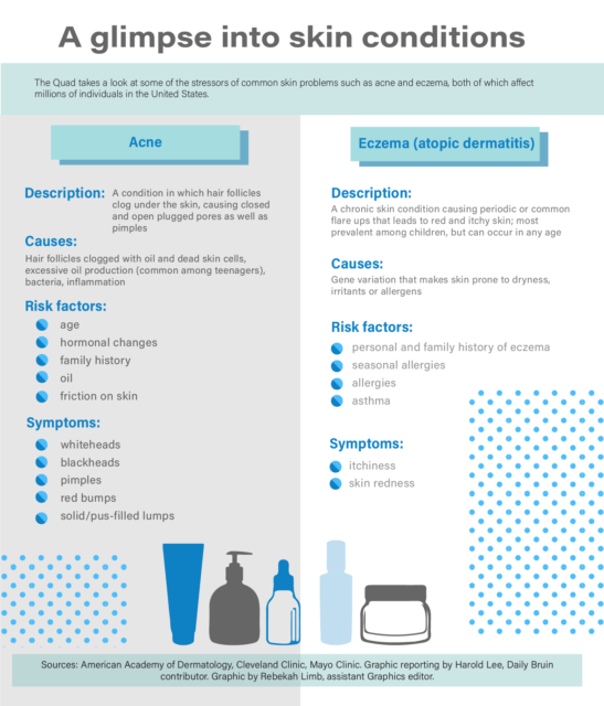 According to UCLA Health dermatologist Dr. Jeremy Davis, chronic skin problems like eczema can negatively impact students’ self-image and as a result, hinder students’ mental health and confidence in their sociability.