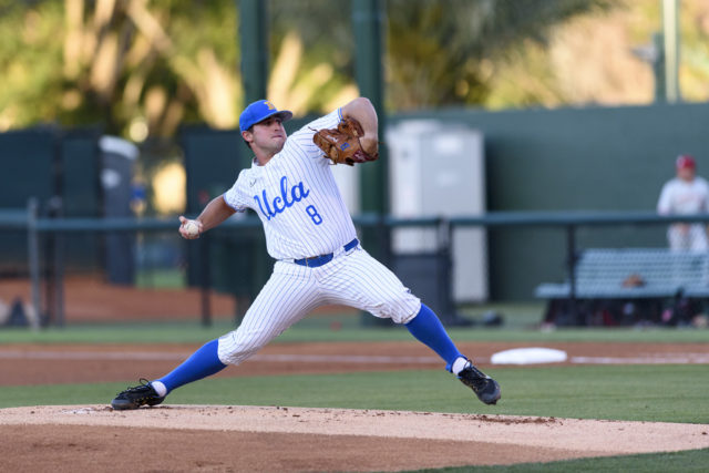 All the offense Rajcic needed to earn the win came in the bottom of the first inning. Freshman second baseman Ethan Gourson, sophomore center fielder Carson Yates and sophomore designated hitter Daylen Reyes drove home the Bruins’ four runs on three RBI hits for an early 4-0 advantage. That would be the only Bruin offense of the night as UCLA mustered two hits in their remaining seven innings.