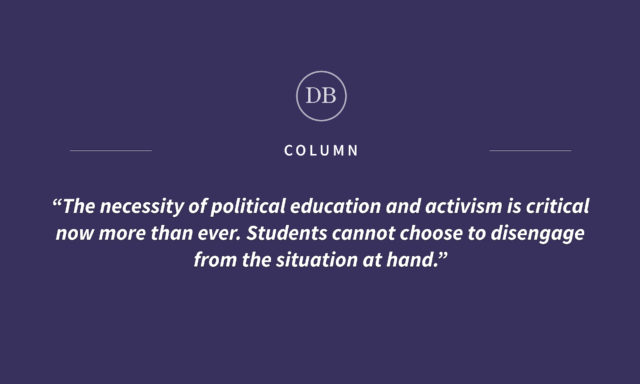 The necessity of political education and activism is critical now more than ever. Students cannot choose to disengage from the situation at hand.