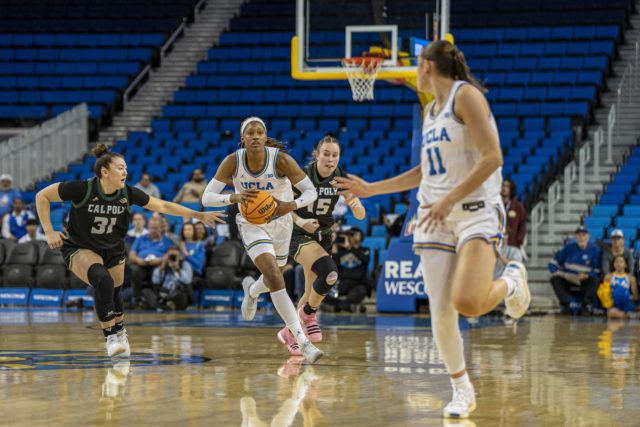 The short-handed No. 1 UCLA women’s basketball (11-0) defeated Cal Poly (4-6) on Monday night at Pauley Pavilion. The 69-37 victory marked the Bruins’ 11th consecutive against the Mustangs dating back to 1975.