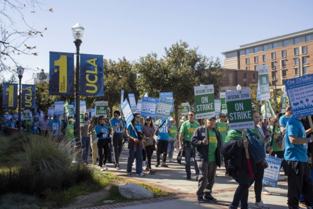 [Related: AFSCME Local 3299, UPTE-CWA 9119 march across UCLA campus, disrupting dining halls]