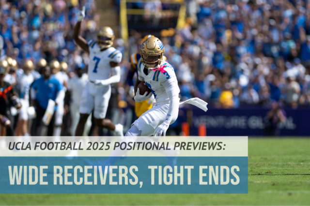 As UCLA football gears up for its second year under coach DeShaun Foster and second season in the Big Ten, Daily Bruin Sports will preview the personnel of each of the Bruins’ position groups and predict their 2025 outlook prior to the season’s official start. Sports editor Connor Dullinger will continue the series with a dive into the squad’s wide receivers and tight ends.