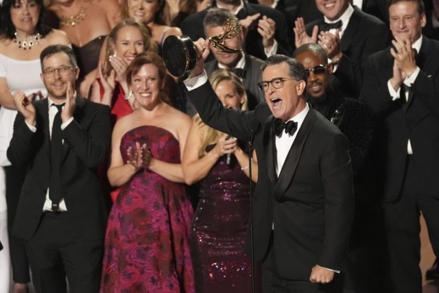 By the end of the night, Bargatze had tallied up the Boys and Girls Club donation total at a strong $350,000. Musicians Vince Gill and Lainey Wilson performed a song of remembrance, “Go Rest High on That Mountain,” in memoriam of the television industry talents who died in the past year, including Maggie Smith, Quincy Jones and Malcolm-Jamal Warner. Toward the finale, the Emmy for Outstanding Talk Series was awarded to CBS’ “The Late Show With Stephen Colbert,” which won twice, adding to its total of 33 nominations overall. With cast members chanting “Stephen” on stage, Colbert accepted his Emmy and spoke with gratitude about the show’s decade-long success.