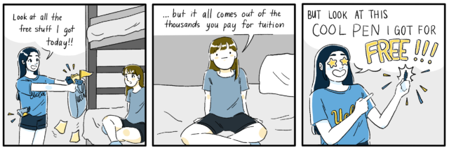 Editorial Cartoon: “Free, for a Cost” By Kelly Zou Posted: September 19, 2025 1:58 pm Cartoons Share Tweet Kelly Zou Comments are supposed to create a forum for thoughtful, respectful community discussion. Please be nice. View our full comments policy here. × Comments are closed. Subscribe to our daily newsletter Related Content Cartoons January 19, 2025 Editorial Cartoon: “The Real Cost” Cartoons November 15, 2024 Editorial Cartoon: “That Used to Be Us” Cartoons August 19, 2025 Editorial Cartoon: “Plz” Poll Academic student workers and graduate student researchers represented by the United Auto Workers union recently ended a nearly six-week strike in which they called for better working conditions and equitable wages. The contract stipulates pay increases for all workers – for some, pay increases of up to 80% – as well as anti-harassment policies and increased childcare support. However, the negotiations have struck controversy among some UAW members dissatisfied with the results of the contract. What are your thoughts on this issue? Only the voices of the bargaining team were heard during the negotiation process – the contract is not all-encompassing of student workers and should not have been ratified. The mediation resulted in a realistic contract for academic workers at this time. The agreed-upon result generally covered what the strikers were asking for. I have feelings about this that are not described in the options above. The contract is neither good nor bad and/or this issue does not directly affect me as a student. Submit View results without voting » Polls ArchiveFeatured Classifieds More classifieds »