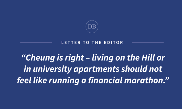 Cheung is right – living on the Hill or in university apartments should not feel like running a financial marathon. When students pay nearly $1,000-$1,200 a month for a shared dorm or apartment, often with broken laundry machines and limited accessibility due to the lack of on-campus space, and outrageous prices, it becomes clear that “affordable housing” is more of a slogan than a reality. Moreover, it’s a big reason why I chose to be a commuter, even though I live two hours away from campus.