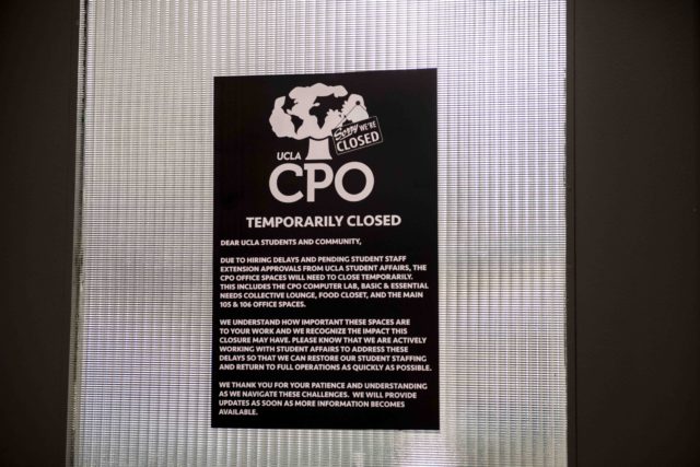 The UCLA Community Programs Office offers basic needs and support resources, such as food and printing services. The office closed temporarily in the first week of the quarter due to delays in hiring and contract extensions, which CPO employees have alleged to be caused by UCLA Student Affairs.