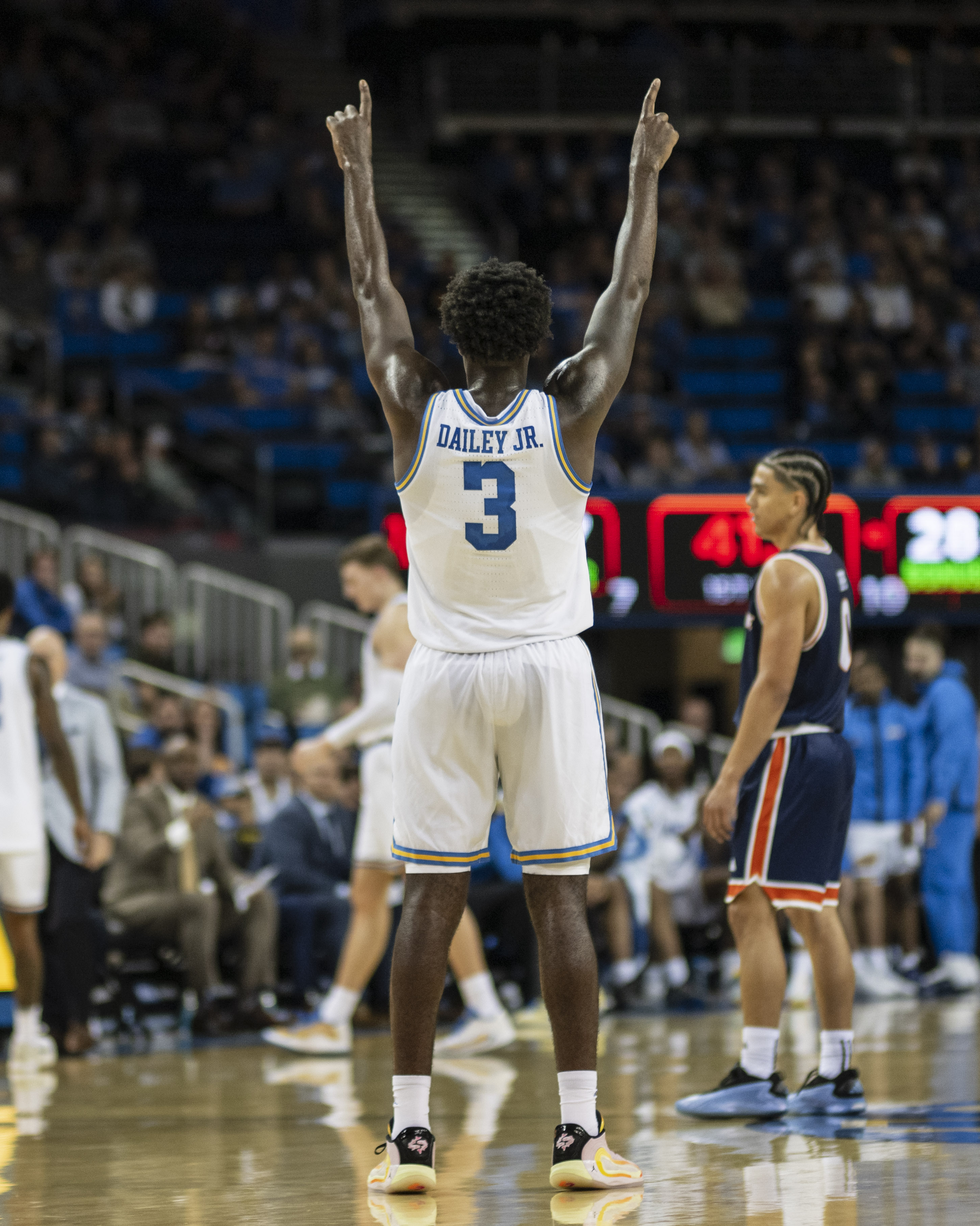 In his season debut and return from a minor knee injury, Dailey recorded the final lead change of the evening with a successful 3-point play and later gave the Bruins a 42-28 lead fewer than two minutes into the second half with his second and final basket from beyond the arc.