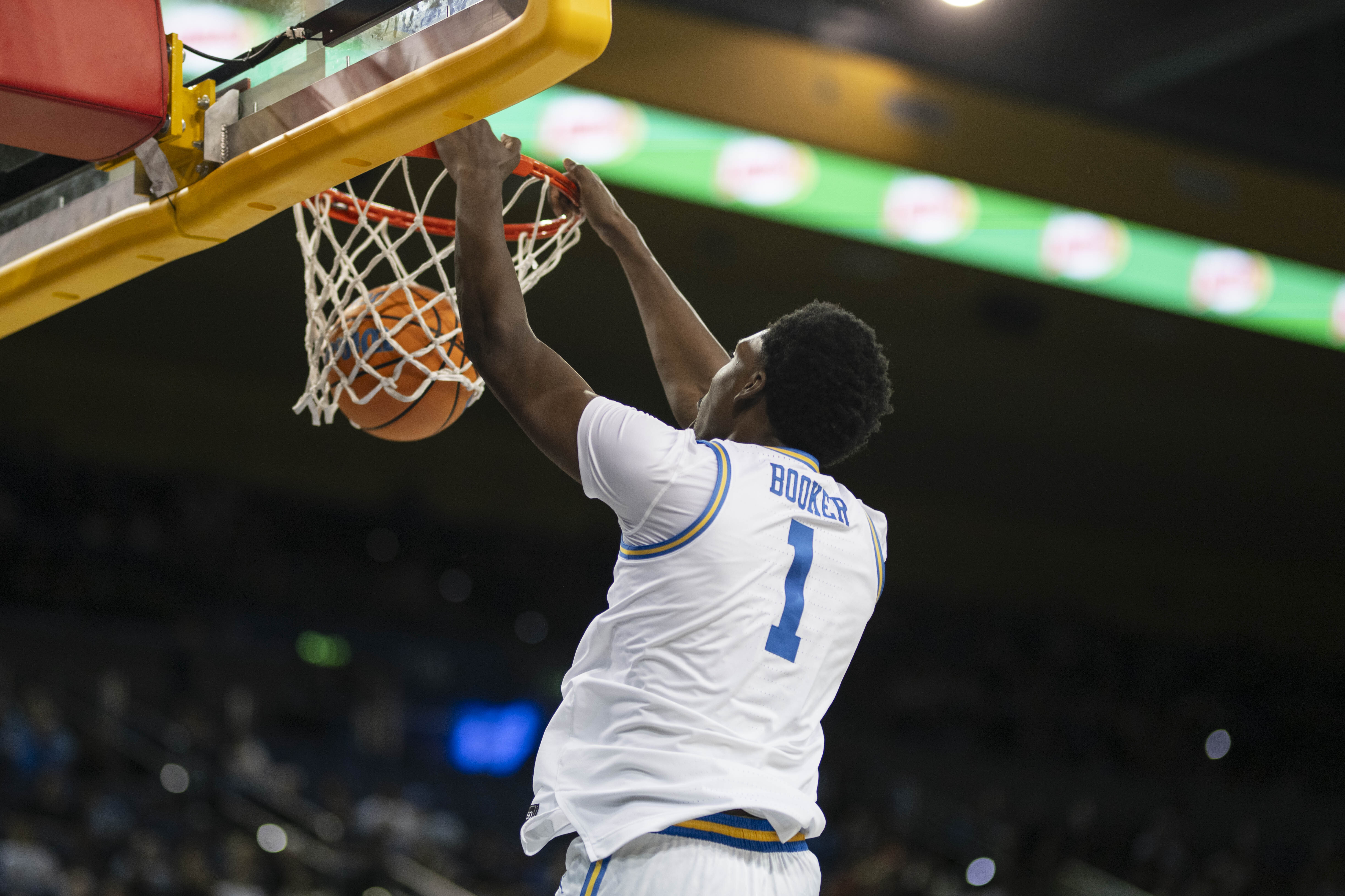 While the Bruins didn’t live up to their billing as 29-5-point favorites for the second consecutive affair, the crowd – fueled by free student tickets, UCLA Bruin Family Weekend and a halftime show from senior gymnast and Dancing with the Stars contestant Jordan Chiles alongside her partner Ezra Sosa – didn’t seem to mind, with the home team leading for the final 32 minutes.
