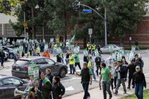 The picketers in Westwood split into two groups around 2:25 p.m. – one with around 70 people outside of Ronald Reagan UCLA Medical Center and the other with around 30 people in front of the UCLA Vatche and Tamar Manoukian Medical Building. A union representative said this split was made because of the volume of picketers outside of the medical center.