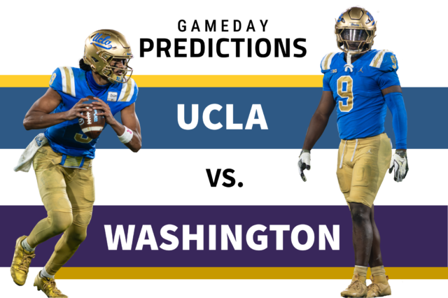 After losing its third game in a row to top-ranked Ohio State last week, knocking the Bruins out of bowl eligibility, UCLA football (3-7, 3-4 Big Ten) will play in what is most likely a meaningless game against Washington (7-3, 4-3) at the Rose Bowl in Pasadena on Saturday night in an affair reminiscent of Pac-12 After Dark. The Huskies beat the Bruins 31-19 last season in Seattle. Here are UCLA’s game 11 predictions from Sports editor Connor Dullinger and Sports senior staff writer Kai Dizon – along with guest predictions from News editor Alexandra Crosnoe and people, culture and community director Felicia Keller.
