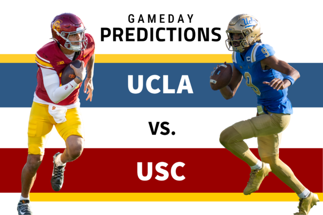 After four consecutive losses, UCLA football (3-8, 3-5 Big Ten) will conclude its 2025 campaign with a crosstown contest against No. 19 USC (8-3, 6-2) Saturday evening at the Los Angeles Memorial Coliseum in the 95th iteration of the Battle of LA. Here are UCLA’s final predictions from Sports editor Connor Dullinger and Sports senior staffer Kai Dizon – along with guest predictions from assistant Photo editor Aidan Sun, managing editor Shiv Patel, editor-in-chief Dylan Winward and digital managing editor Zimo Li.