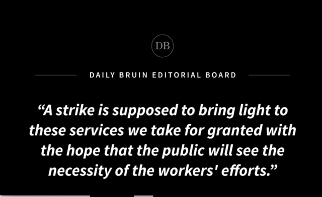 The American Federation of State, County and Municipal Employees Local 3299 went on strike last month after UCLA failed to negotiate a fair contractual agreement with its members. This union represents 37,000 service, patient care and skilled craft workers at the UC’s 10 campuses.
