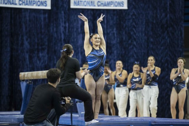 But a thumb injury and a knee injury as an underclassman hampered Alipio’s performance slate. Alipio was unable to compete vault, bars and floor – apart from one floor exhibition Jan. 4 last season – across her first three years as a Bruin.