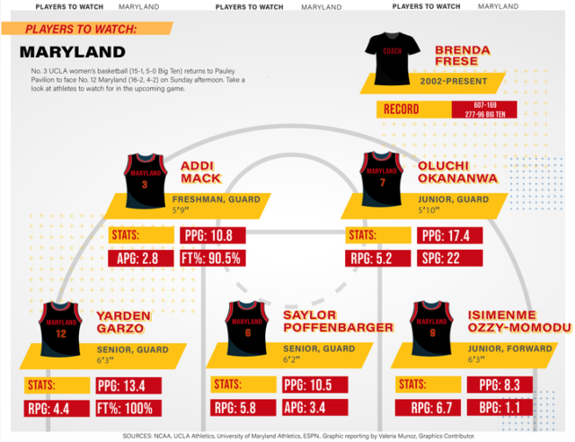 Regardless, Maryland is the highest-ranked team that UCLA has faced off against since losing to No. 4 Texas. The Terrapins are one of eight ranked teams in the Big Ten, behind the Bruins, the No. 8 Wolverines and the No. 11 Hawkeyes.