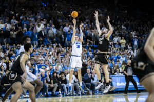 Senior forward Tyler Bilodeau’s 3-pointer from the right wing put the Bruins up two and solidified the victory, keeping their home record perfect.