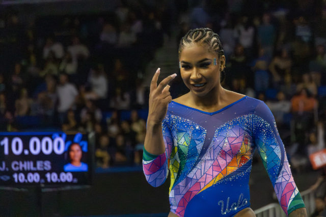 Powered by season-high marks on floor, vault and bars, No. 5 UCLA Gymnastics notched a 198.150, defeating Washington’s 195.825 at Pauley Pavilion on Friday. This is Chiles’ third week of reaching perfection, after notching a perfect ten on floor and vault, respectively, the last two weeks.