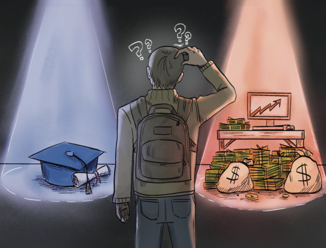 “There’s information coming from so many different directions now that people also can raise a curious eye around, ‘Should I go to campus for four to five years when surely I can just read some books and look at these reels and sort of try it myself?’” Cole said.