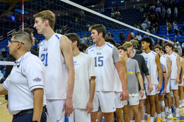 In contrast, the Bruins saw diverse efforts, including another 14 kills from sophomore outside hitter Sean Kelly and a .500 hitting clip from senior middle blocker Cameron Thorne.