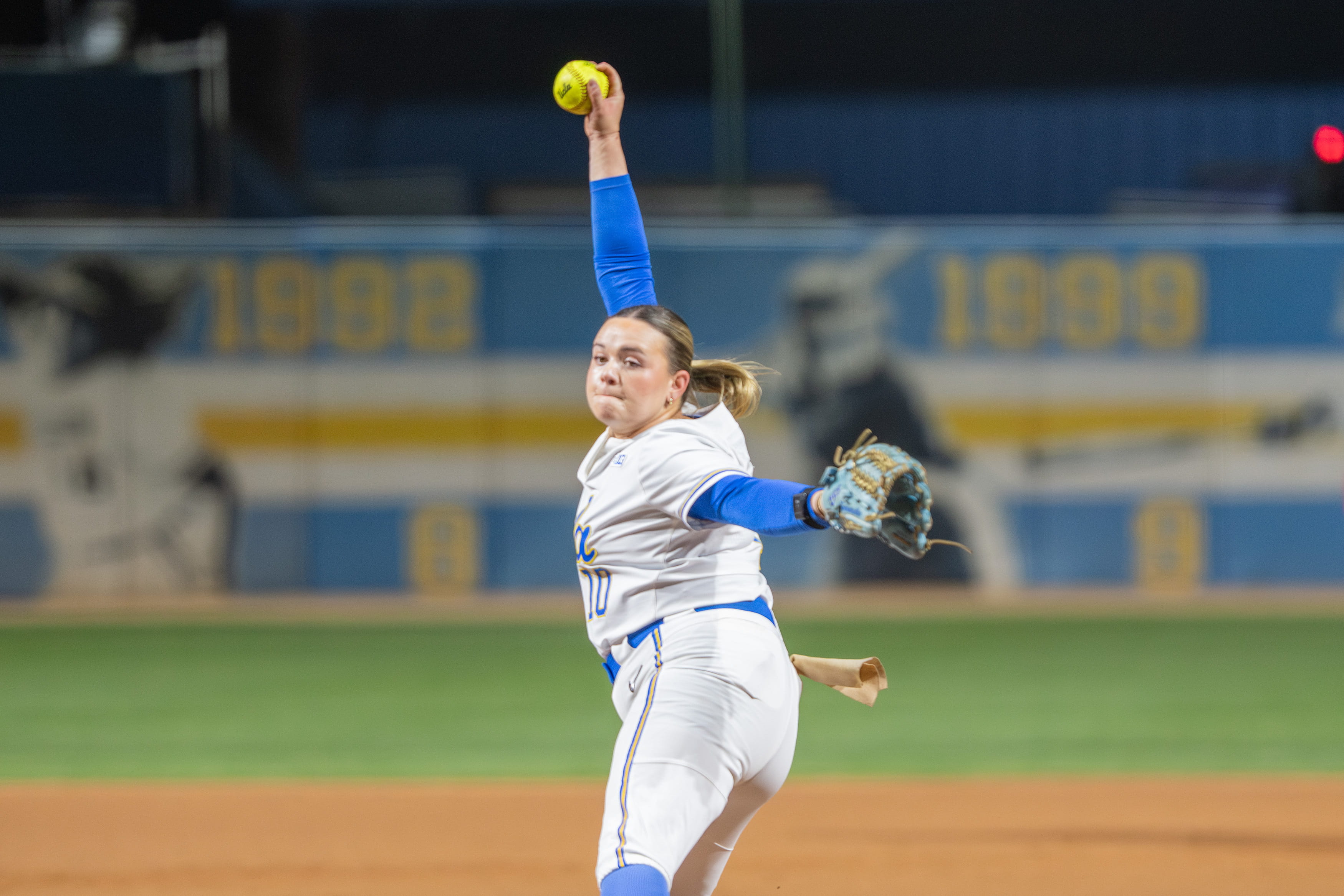 No. 7 UCLA softball (19-3, 1-0 Big Ten) hosted the first game of a three-game weekend series against Wisconsin (14-8, 0-1) that lasted just five innings Friday night. The Bruins bested the Badgers 14-5 at Easton Stadium to start conference play.