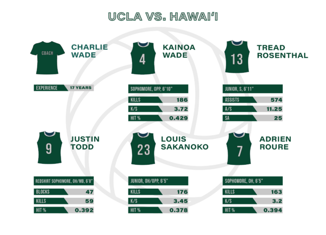Blocking the ball at the net and performing scrappy defense will be key against UCLA. Hawai‘i ranks 10th in the country in opponent hitting percentage, holding foes to a sub-.200 clip.