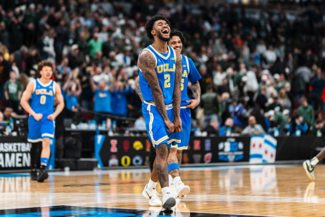 Despite senior forward Tyler Bilodeau – the Bruins’ leading scorer, rebounder and most efficient 3-point shooter – leaving just 16 minutes into the game with a knee injury, No. 6 seed UCLA men’s basketball (23-10, 13-7 Big Ten) upset No. 3 seed Michigan State (25-7, 15-5) 88-84 in the Big Ten tournament quarterfinals Friday night at the United Center in Chicago.