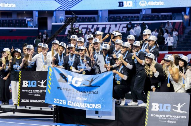 With Chiles’ 39.825 all-around tally, No. 5 UCLA gymnastics won its second consecutive Big Ten Championship with a score of 198.100 Saturday at State Farm Center in Champaign, Illinois. The Bruins competed head-to-head with No. 10 Michigan, No. 11 Michigan State and No. 13 Minnesota.