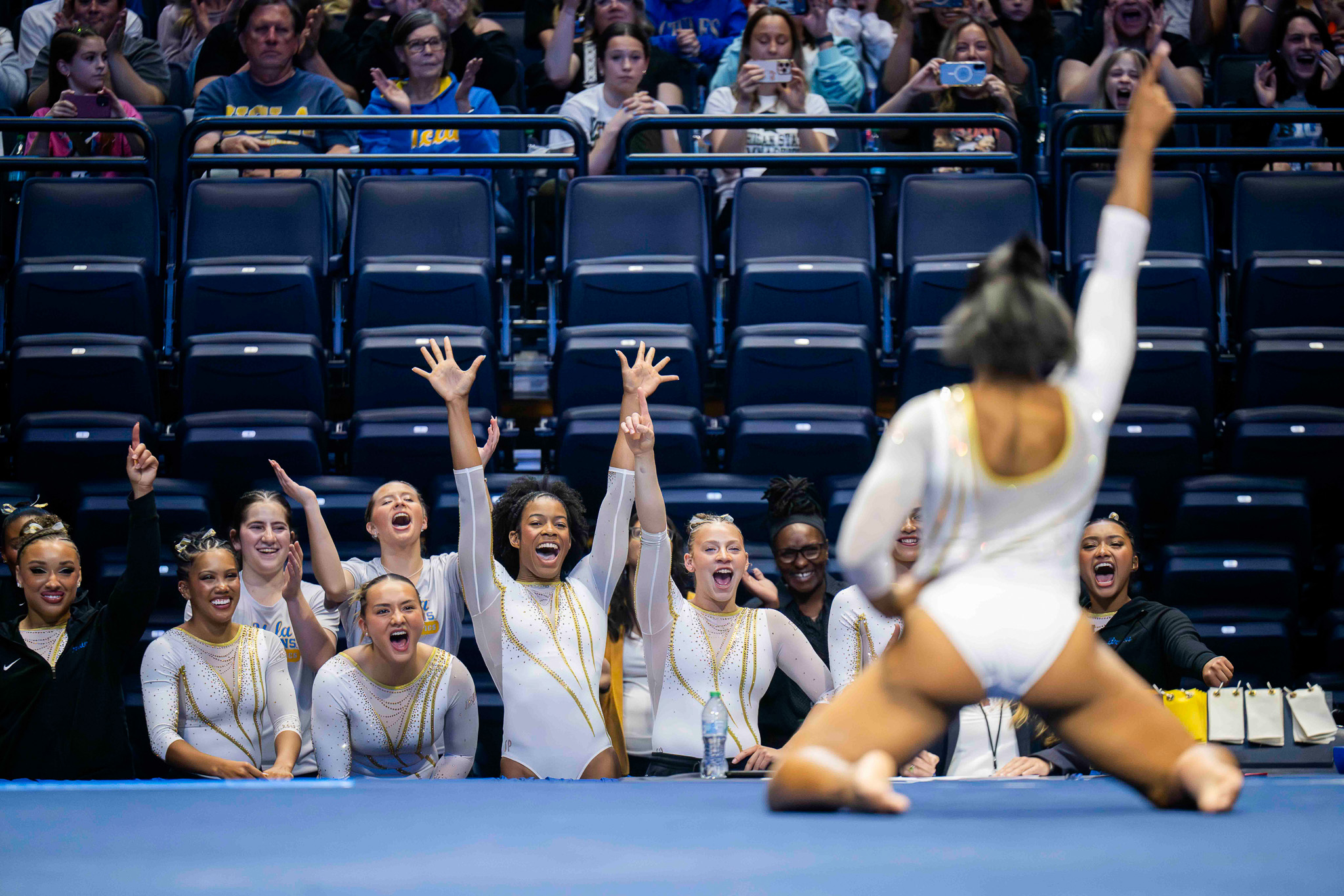 The Bruins added an extra 10.0 start value to the vault lineup Saturday, as Katelyn Rosen and her Yurchenko 1.5 returned to the rotation for the first time since Feb. 22 in place of senior Madisyn Anyimi. The junior earned a 9.825 with a small hop on her landing.