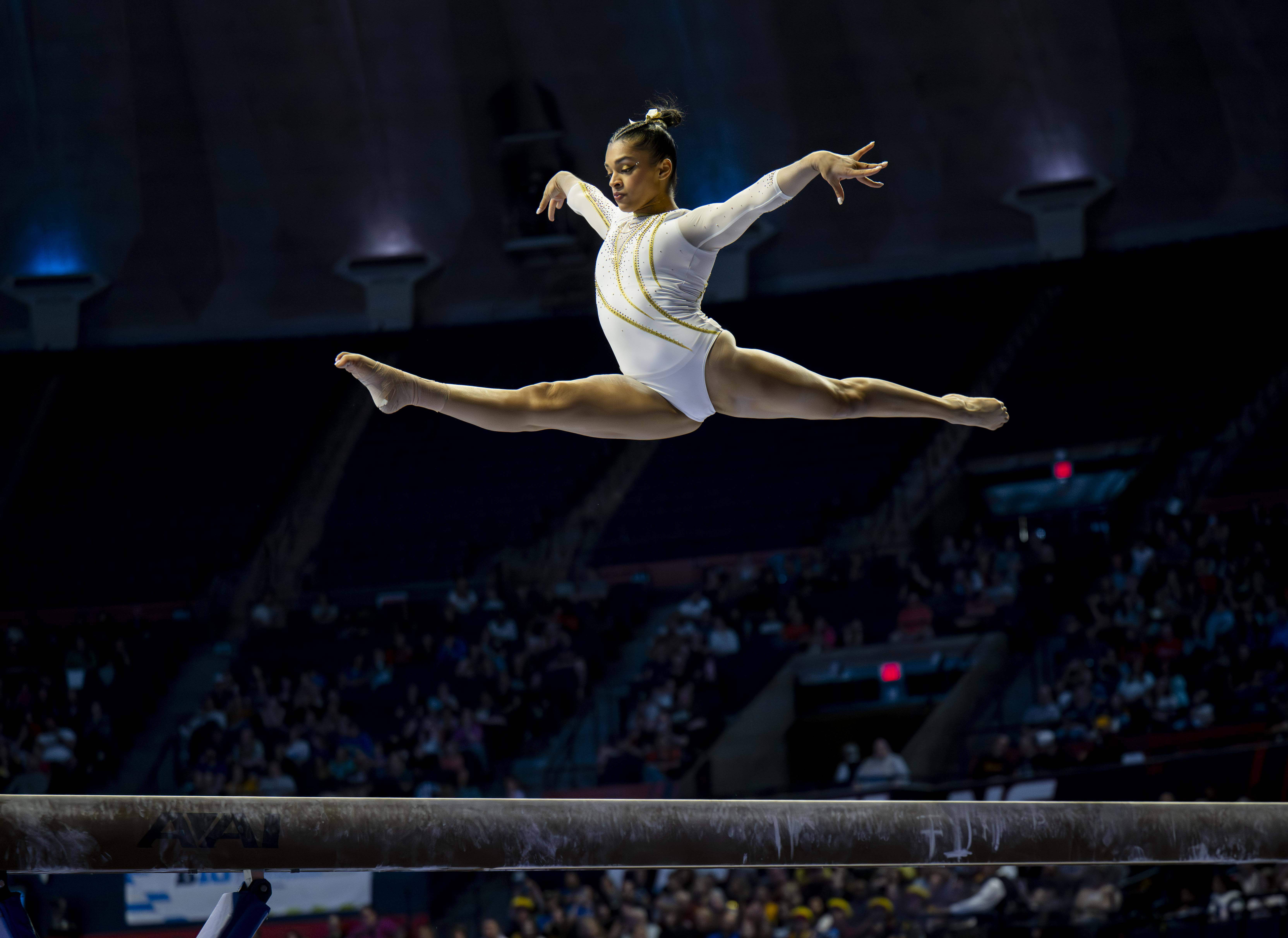 “(Jordan) wasn’t fixating on the little details, scores,” said coach Janelle McDonald. “She was focusing on ‘How do I show up and make sure that I’m doing the routine I can to help my team today.’”