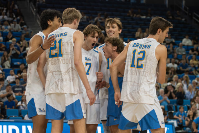 Around the midway point of the first set, a quick dig by libero Jacob Reilly sent the ball over the net toward redshirt junior opposite David Decker and senior middle blocker Cameron Thorne. The two collided as they both attempted the attack, resulting in a rare net violation for the Bruins.