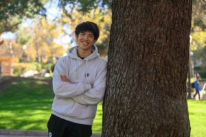 Photo: Gage Garduno holds up tights. The fourth-year architectural studies student is a multitalented stylist, model, DJ and director. (Victor Simoes/Daily Bruin)