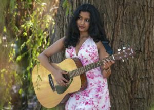 Photo: Leaning against a tree while holding an acoustic guitar is Shivali Pathak. The second-year student released her debut single, “You and I,” which depicts a love story set in Los Angeles. (Karla Cardenas-Felipe/Daily Bruin staff)