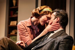 Photo: Marianna Gailus as Sylvia Plath (left) and Cillian O’Sullivan as Ted Hughes (right) pose intimately with their foreheads pressed together. Written by Beth Hyland, the award-winning production “Sylvia Sylvia Sylvia” debuted at the Geffen Playhouse Feb. 4. (Courtesy of Jeff Lorch)