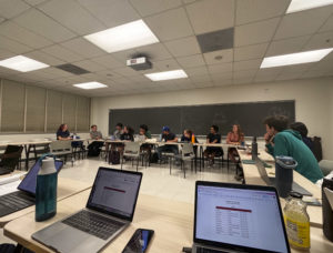 Photo: Tyler Neufeld gestures to a fellow cast member while rehearsing for his play, “The Man Who Ate Time.” The fourth-year theater student has been working on the play since his sophomore year at UCLA. (Ruby Galbraith/Daily Bruin)