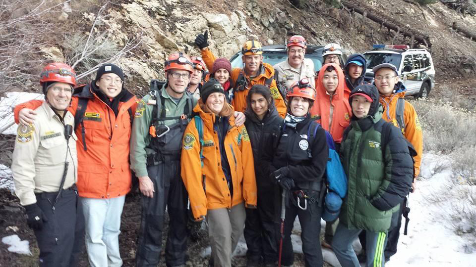 Photo: Los Angeles County Sheriff’s Department search and rescue team members brought eight members of the UCLA Hiking Club to their cars Sunday after the students became lost in the snow. (LASD)