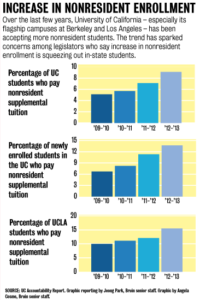 The University of California has increased enrollment of international and out-of-state students in recent years to boost revenue, but state officials are advocating for the University to cap nonresident enrollment and prioritize in-state students in its admissions processes. Read more...