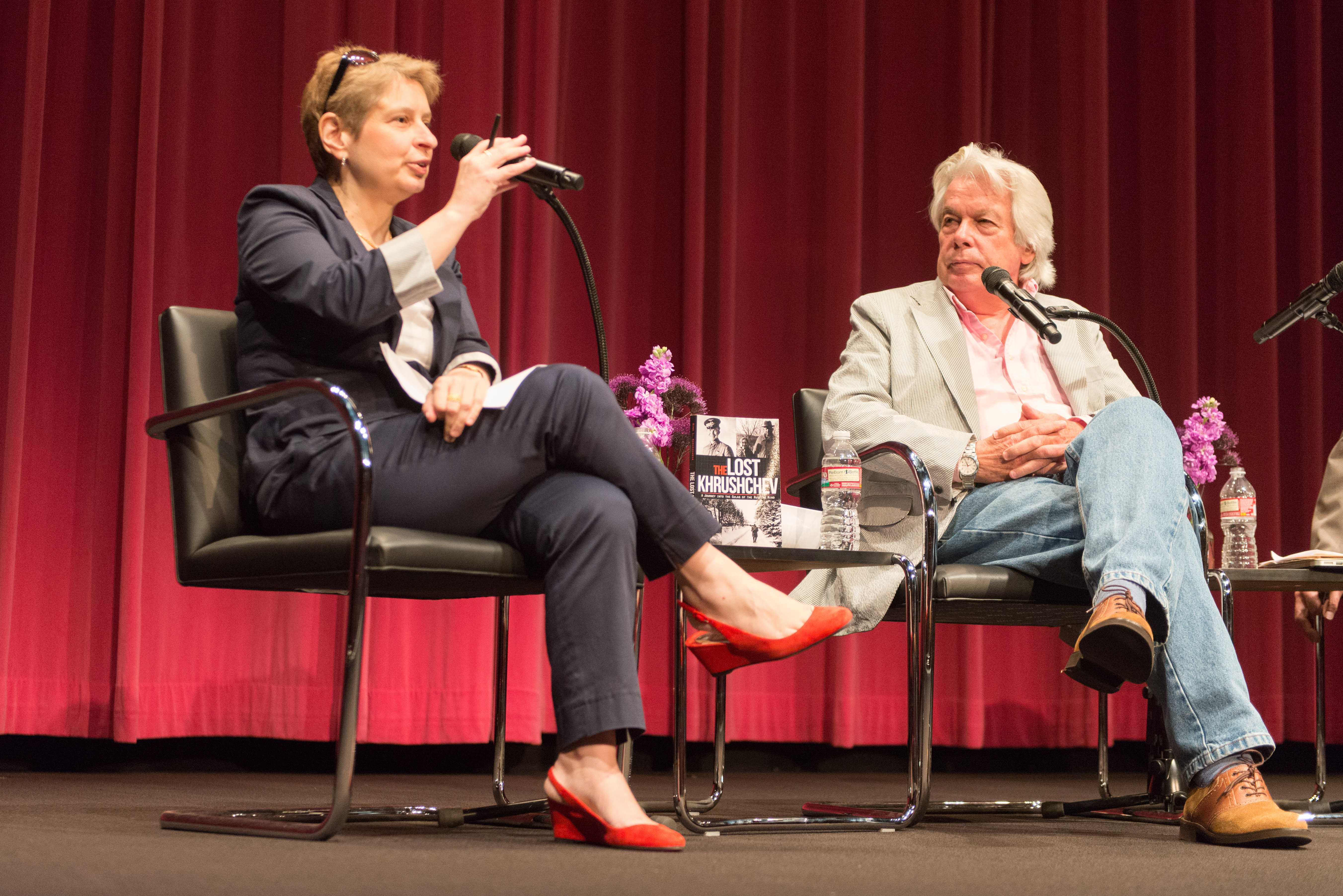 Photo: Nina Khrushcheva and Robert English discussed the conflict at Ukraine. (Brandon Choe/Daily Bruin senior staff)