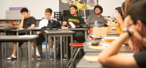 Photo: Students participate in discussion at the UCLA Community School, a bilingual K-12 public charter school supported by the university.