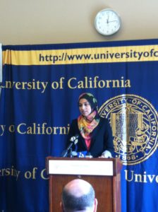 Photo: Following her appointment as student regent-designate, Sadia Saifuddin speaks at a small press conference on Wednesday at UC San Francisco Mission Bay Conference Center.