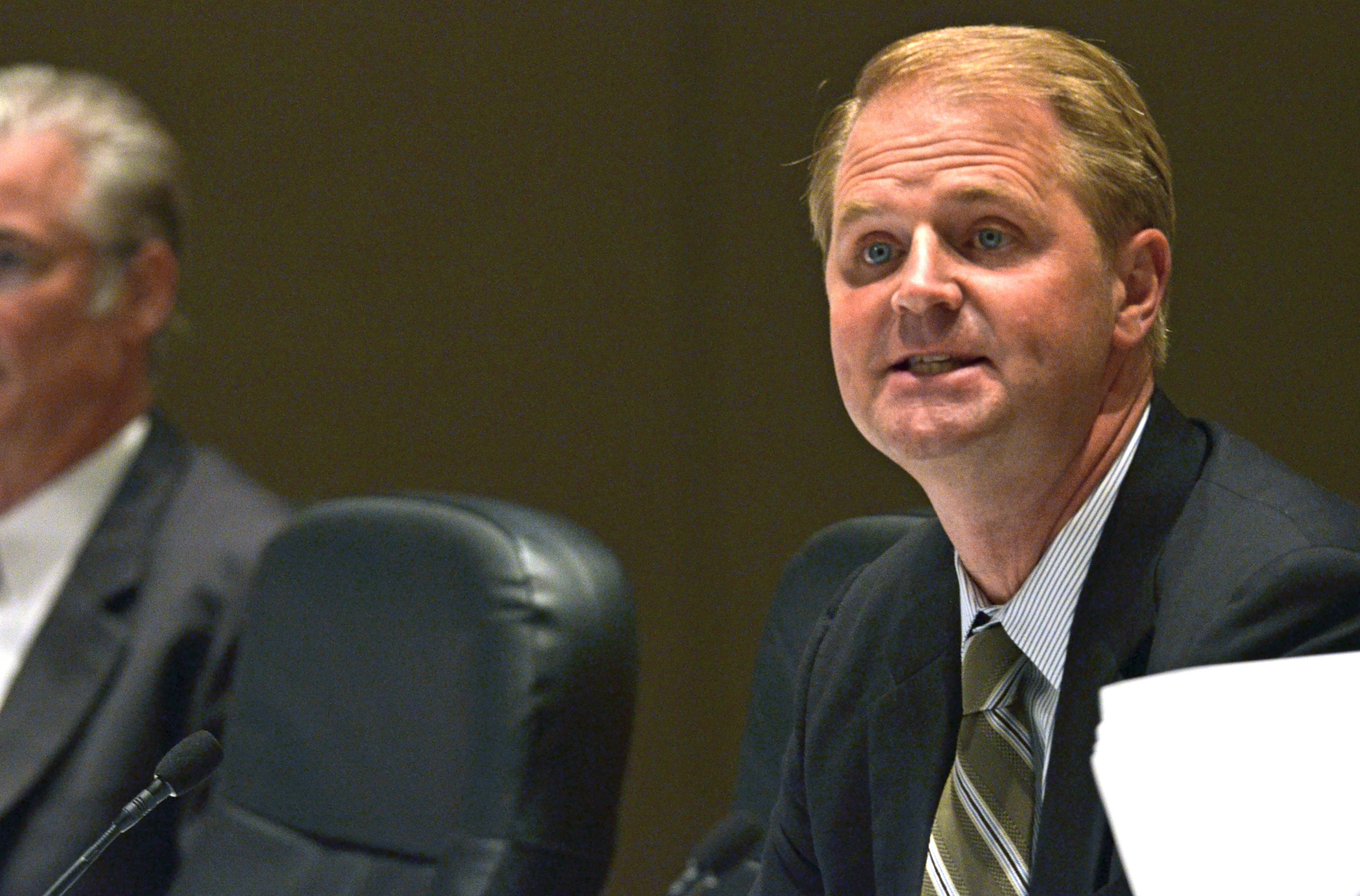 Nathan Brostrom, executive vice president for business operations, participates in a discussion about the university budget. The regents discussed a possible 6 percent tuition increase.