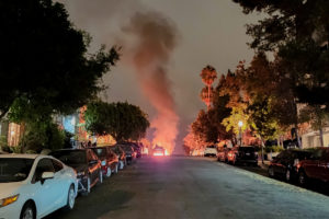 Photo: A fire burns on Roebling Avenue. The fire began around 9:30 p.m. Saturday and followed UCLA football’s upset victory against Penn State. (Andrew Ramiro Diaz/Photo editor)